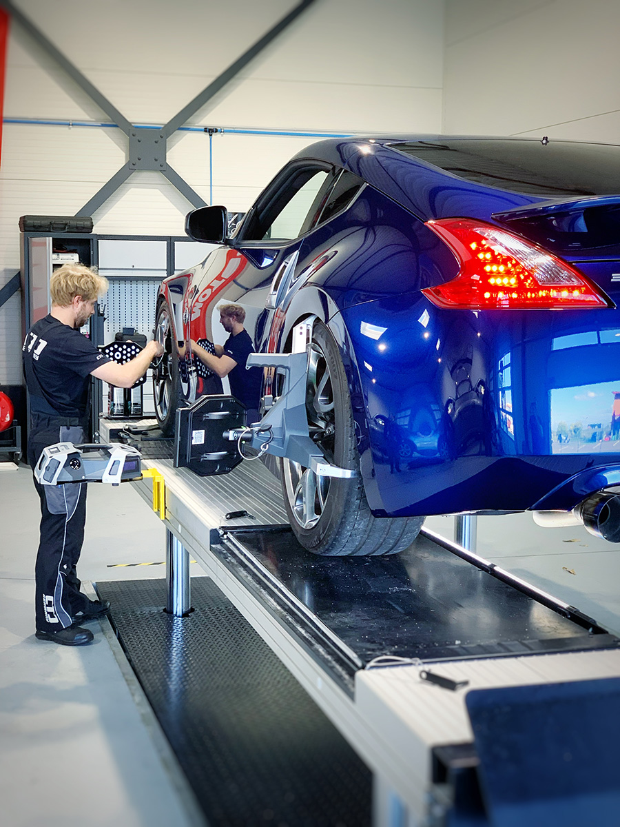 Mit unserer 3D-Achsvermessung können wir die Achsen Ihres Fahrzeugs präzise einstellen, egal ob Standardfahrzeug oder hochgetuntes Sportauto.